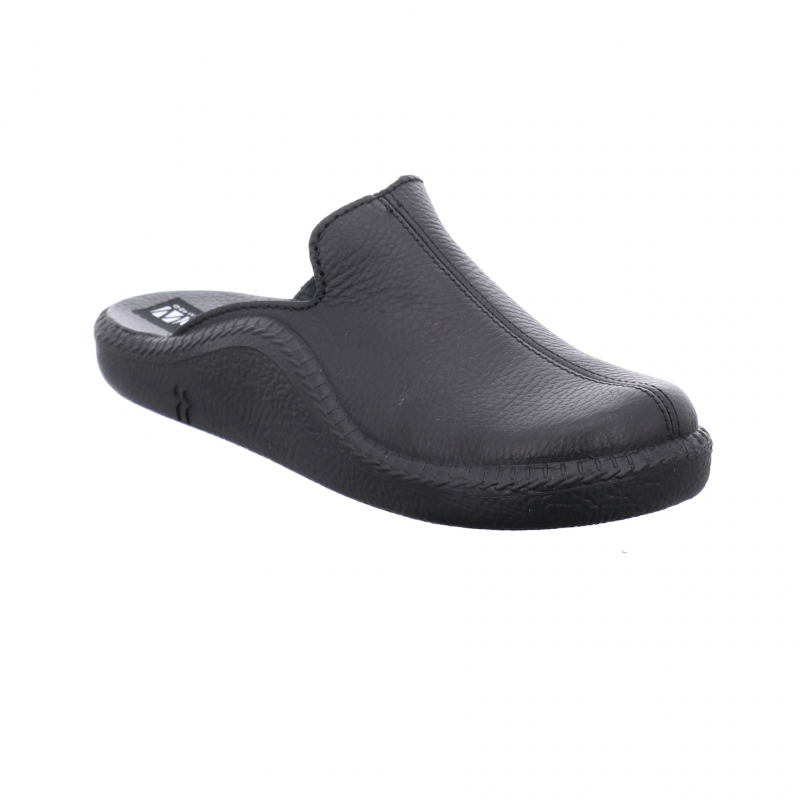 Mule noire en cuir grainé très emboitante, non doublée avec sa semelle gomme très confortable de la marque WESTLAND. Disponible en grande taille homme en pointure 46, 47, 48 et 50.