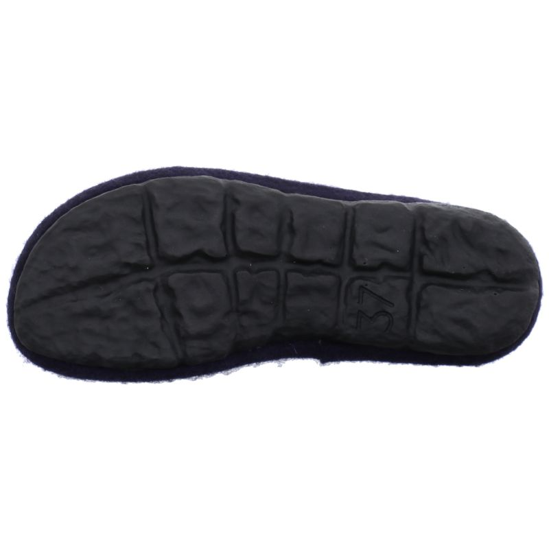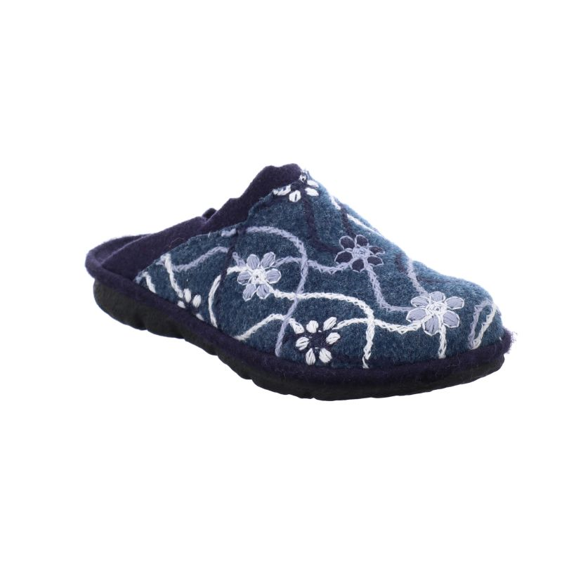 Mule marine en laine agrémentée de jolies fleurs confortable pour le bien-être du pied grâce à sa semelle légère en élastomère de la marque allemande WESTLAND. Disponible en Grande Pointure Femme en taille 43 et 44.