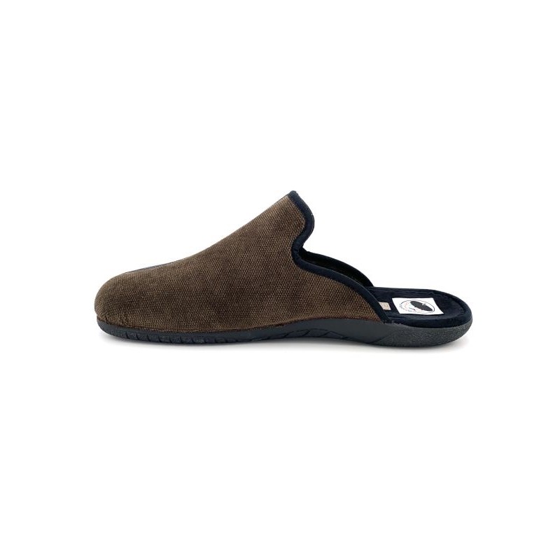 Mule en velours bicolore marine et marron textile, doublée textile très doux et confortable avec sa semelle gomme anti-dérapante de la marque française La Bande à Mich.