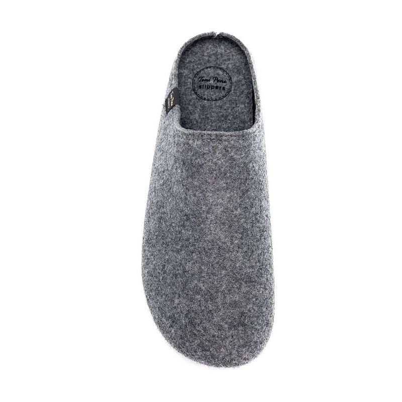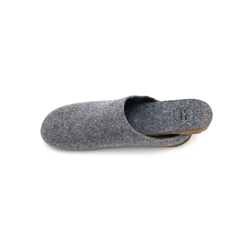 Mule en laine de couleur grise avec une semelle amovible de la marque espagnole Toni Pons, emboîtante et confortable pour le bien-être du pied. Disponible en pointure 46, 47, 48, 49 et 50.